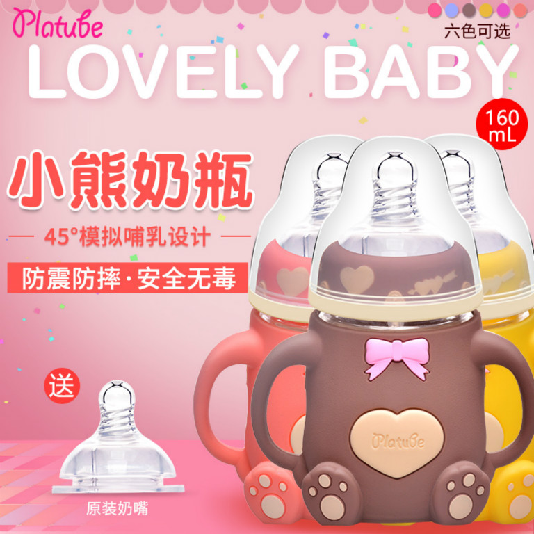 6、小熊形硅膠保護套:采用食品級硅膠材質,無雙酚A、BPA等有害物質,可以有效防摔防爆,還可以保溫,特別適合秋冬季節(jié)使用,同時可愛呆萌的造型對寶寶有格外的吸引力,可以鍛煉寶寶的智力發(fā)育,使寶寶愛上奶瓶喝奶。