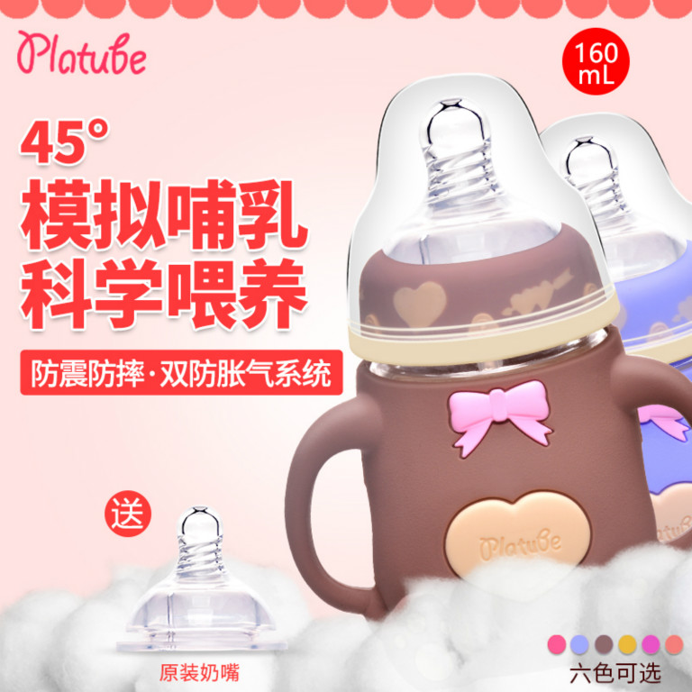 3、瓶身高硼硅晶鉆玻璃材質,安全耐高溫600℃正負溫差200℃;不含雙酚A、BPA;寬口44MM口徑易倒奶粉易清洗;環(huán)保油墨貼花刻度安全衛(wèi)生更具設計空間感。