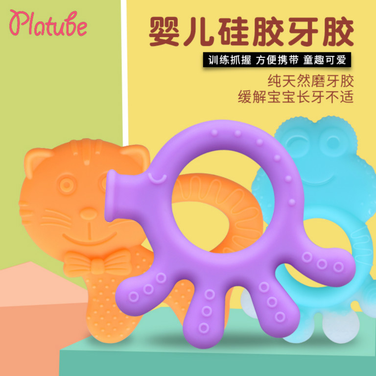 第三階段:長出上下四顆牙的時(shí)候 寶寶到長出4顆邊上的門牙和4顆尖牙(犬齒)時(shí),建議選用形狀跟安撫奶嘴相似、重量較輕、易抓握的奶嘴牙膠,軟、硬質(zhì)感層既按摩新長出牙齒周圍的牙肉,又讓寶寶體驗(yàn)咬嚼的感覺。