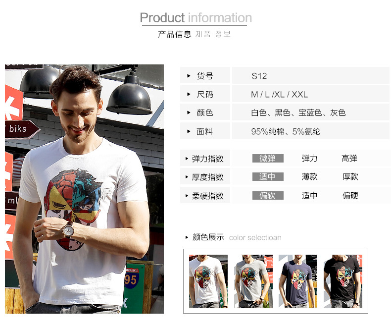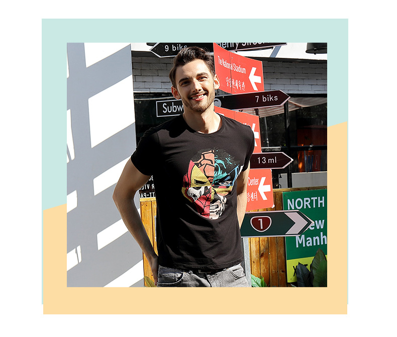 2018男裝新款夏季韓版男式t恤 純棉個(gè)性潮流男士短袖印花t