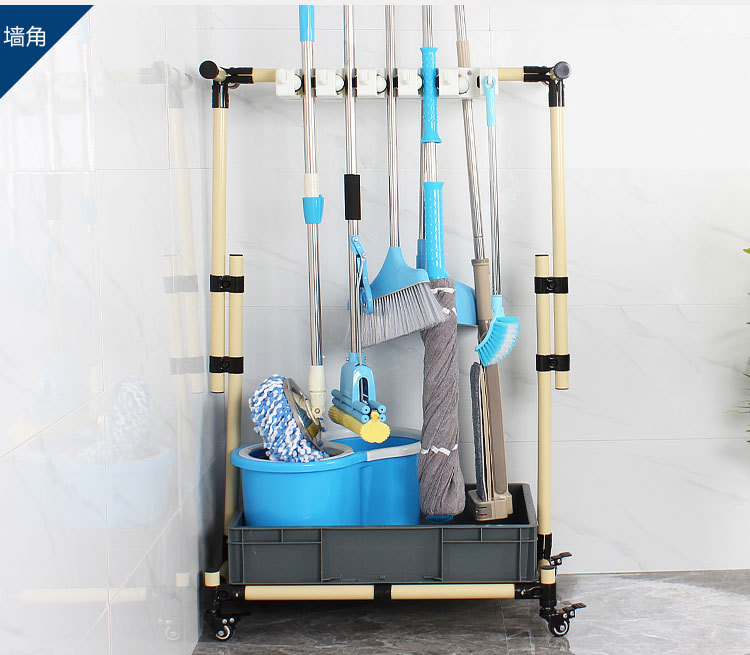 011可移動(dòng)落地拖把架米黃色16掛20鉤掛架子墩布架收納架