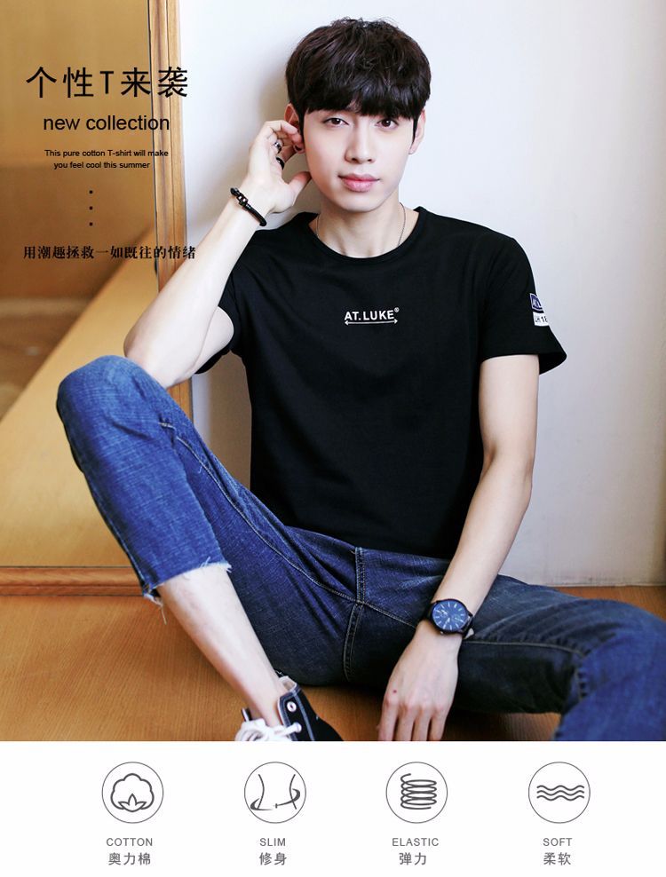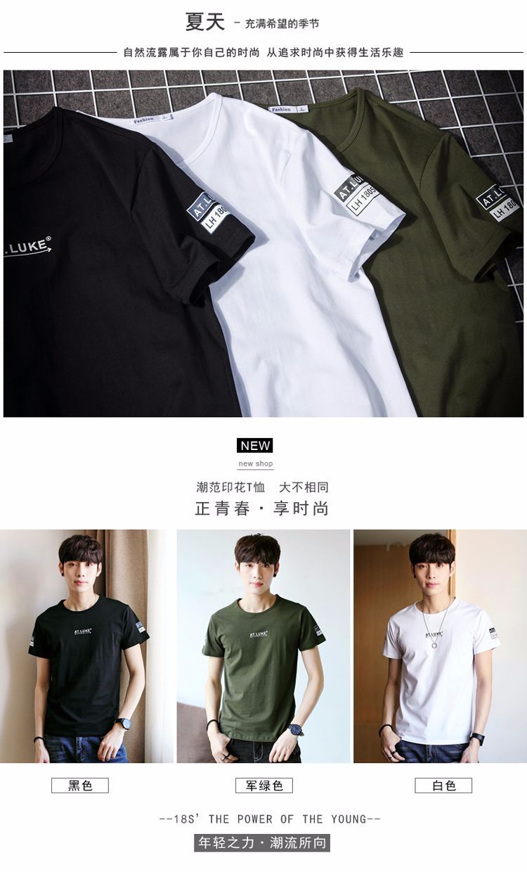 2018夏季男士時(shí)尚潮流印花短袖T體恤男圓領(lǐng)簡約半袖青少年潮