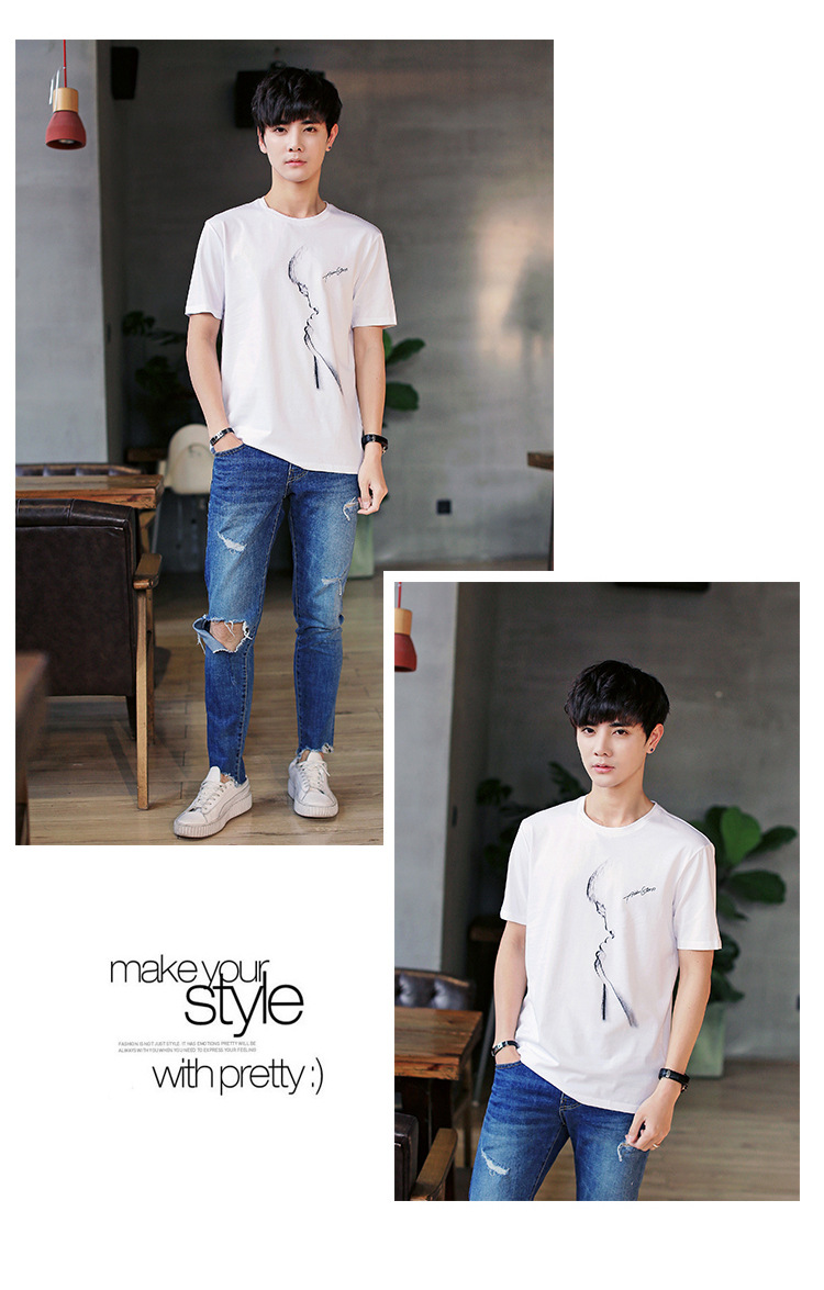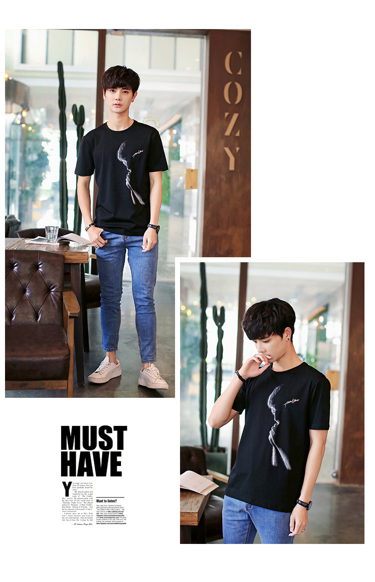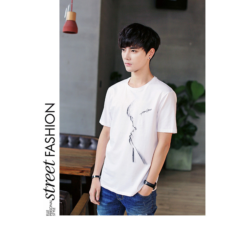 2018男裝新款夏季韓版男式t恤 純棉個(gè)性潮流男士短袖印花t