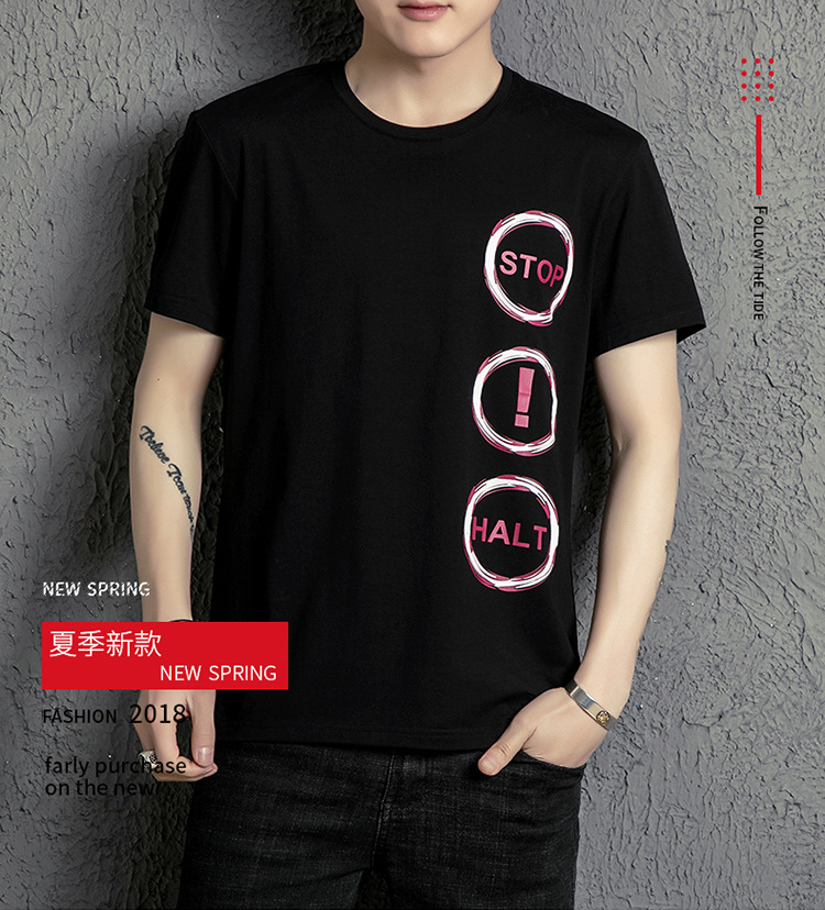 2018夏季男士時(shí)尚潮流印花短袖T體恤男圓領(lǐng)簡(jiǎn)約半袖青少年潮