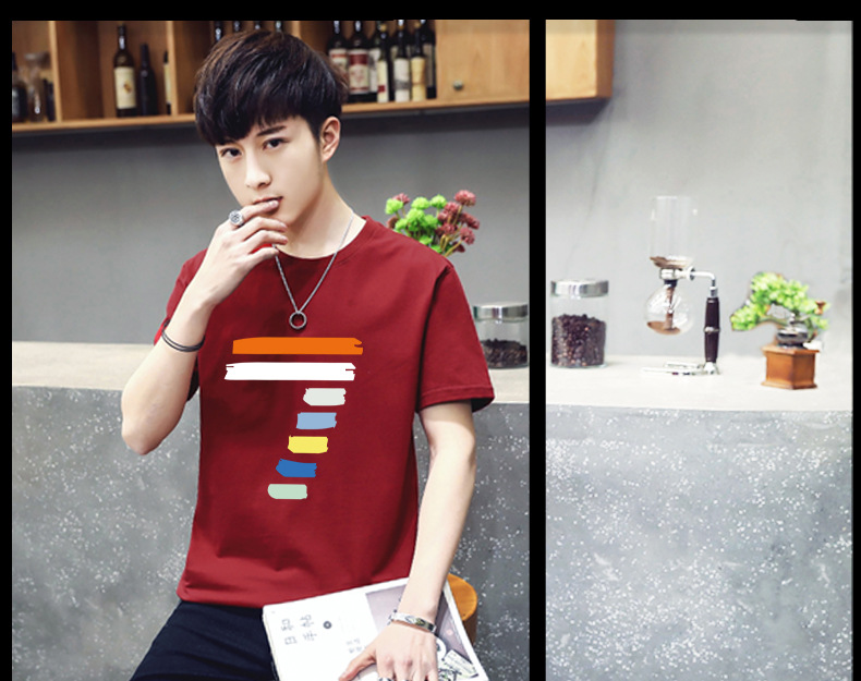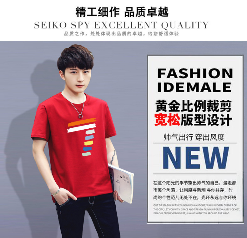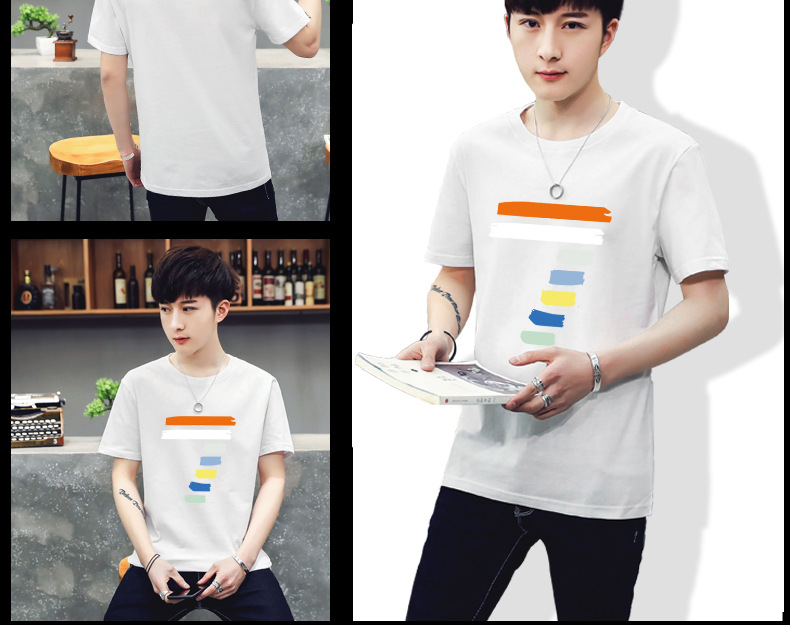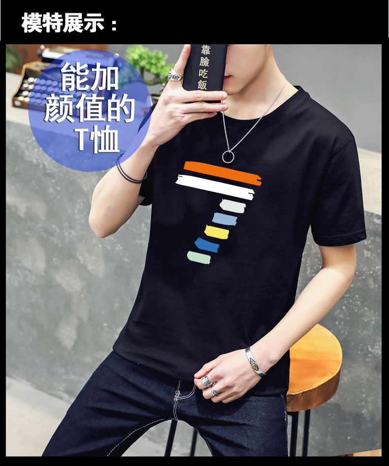 2018夏季男士時尚潮流印花短袖T體恤男圓領(lǐng)簡約半袖青少年潮